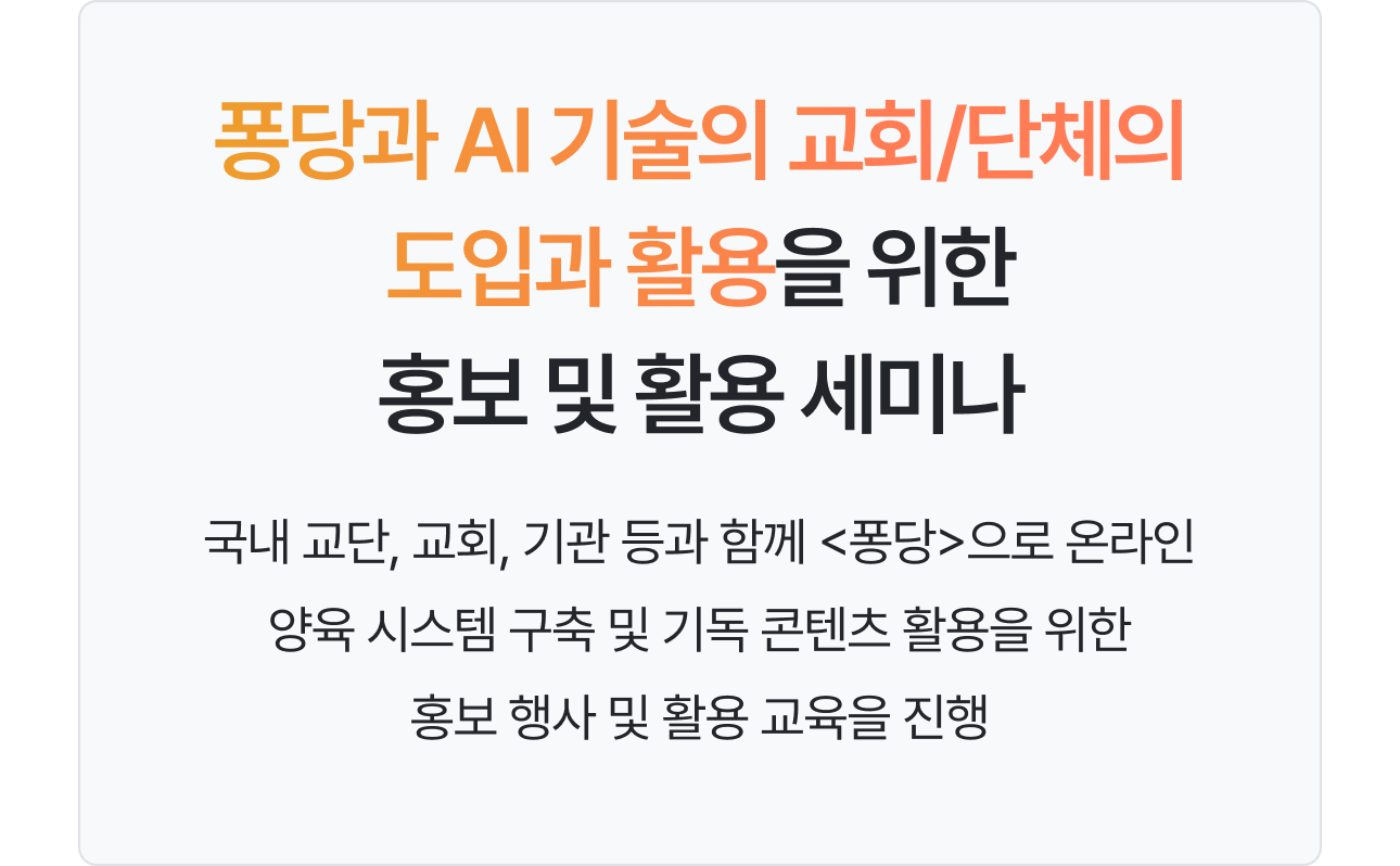 퐁당과 AI를 적극적으로 활용하고자 하는 교회/단체의 많은 관심과 문의를 기다립니다.