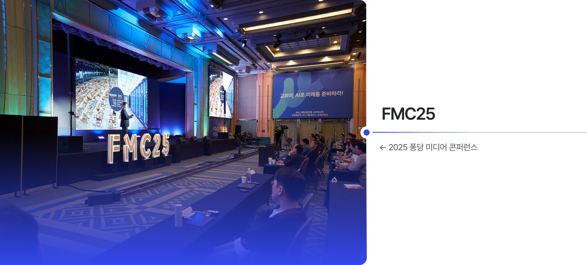 빠르게 발전하는 AI 기술과 기독 최초 OTT 플랫폼 서비스<퐁당>을 기반으로 미래 교회의 목회 전략을 나누는 기독 최대 규모의 미디어 콘퍼런스. 명사들의 유익한 KETNOTE, AI 기술 활용에 대한 다양한 Track Session, 네트워크를 위한 풍성한 부대행사들을 만나볼 수 있는 유일한 기회!